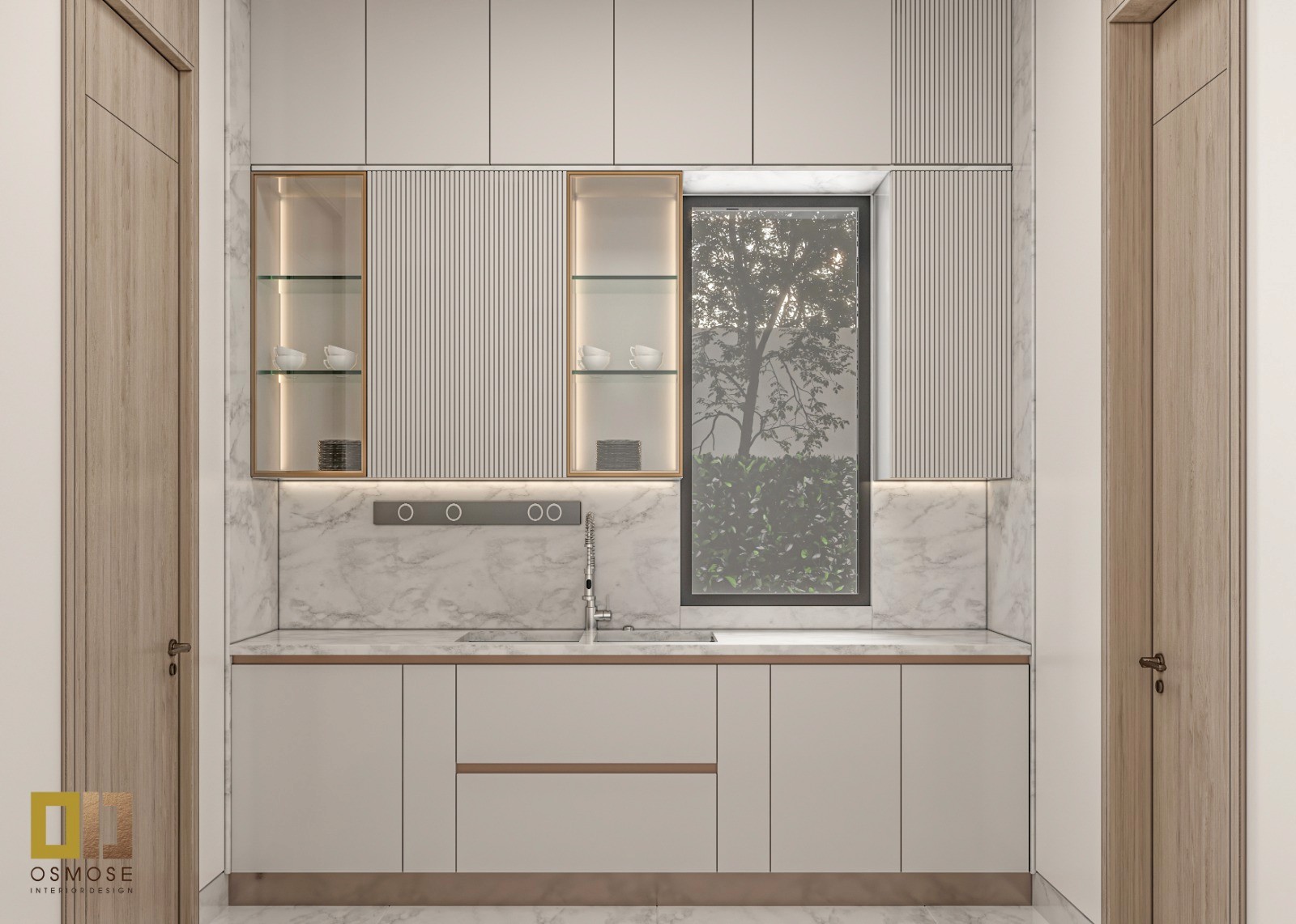 A refined palette of warm beige, soft grey, and light stone tones creates a timeless and elegant environment. Subtle contrasts are used to add depth while maintaining visual calmness.