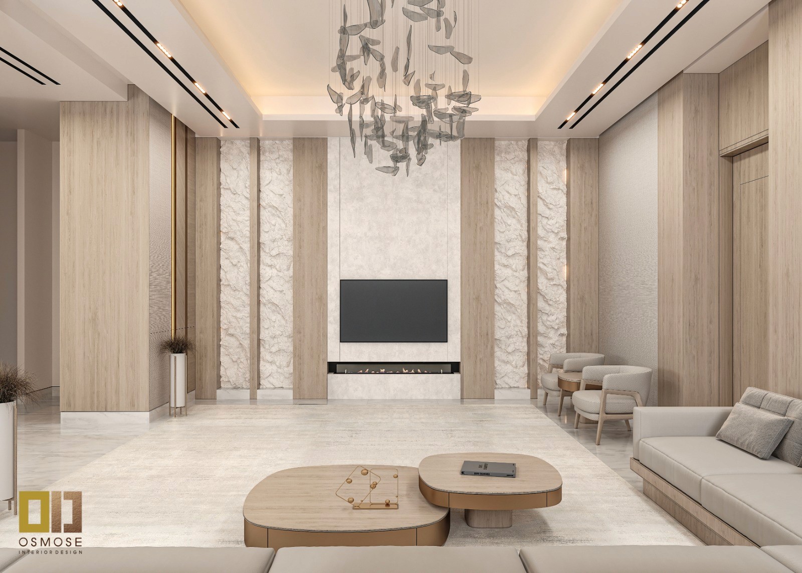 Custom-designed seating, sculptural coffee tables, and minimal decorative elements enhance the luxury feel without overpowering the design. Accessories are carefully curated to maintain clarity and elegance.
